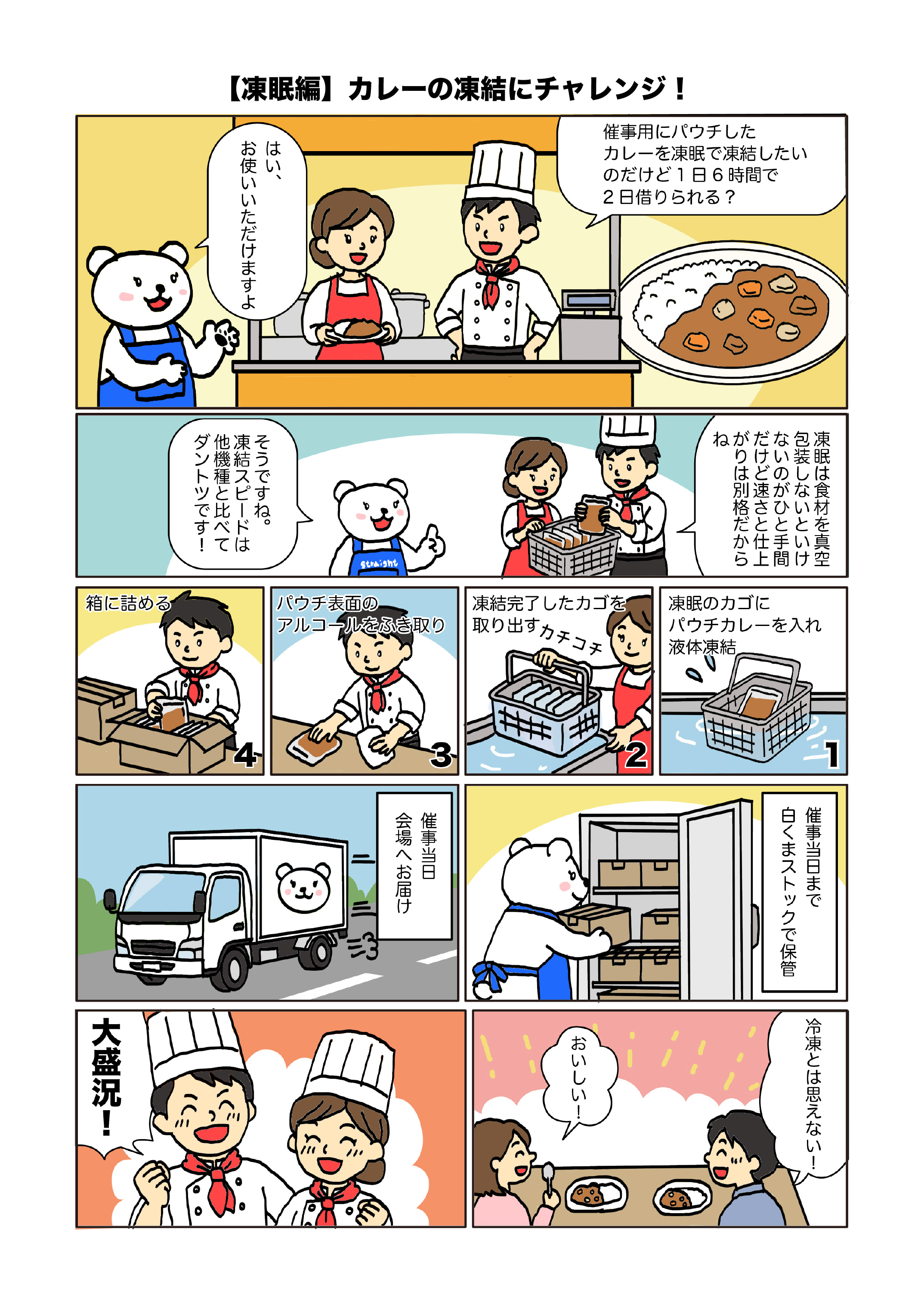 株式会社ストレートで運営する白くまストックは、冷凍食品製造業許可を取得していますので、ここで急速冷凍した食品を販売することが可能です。(※詳しくはご相談ください。)